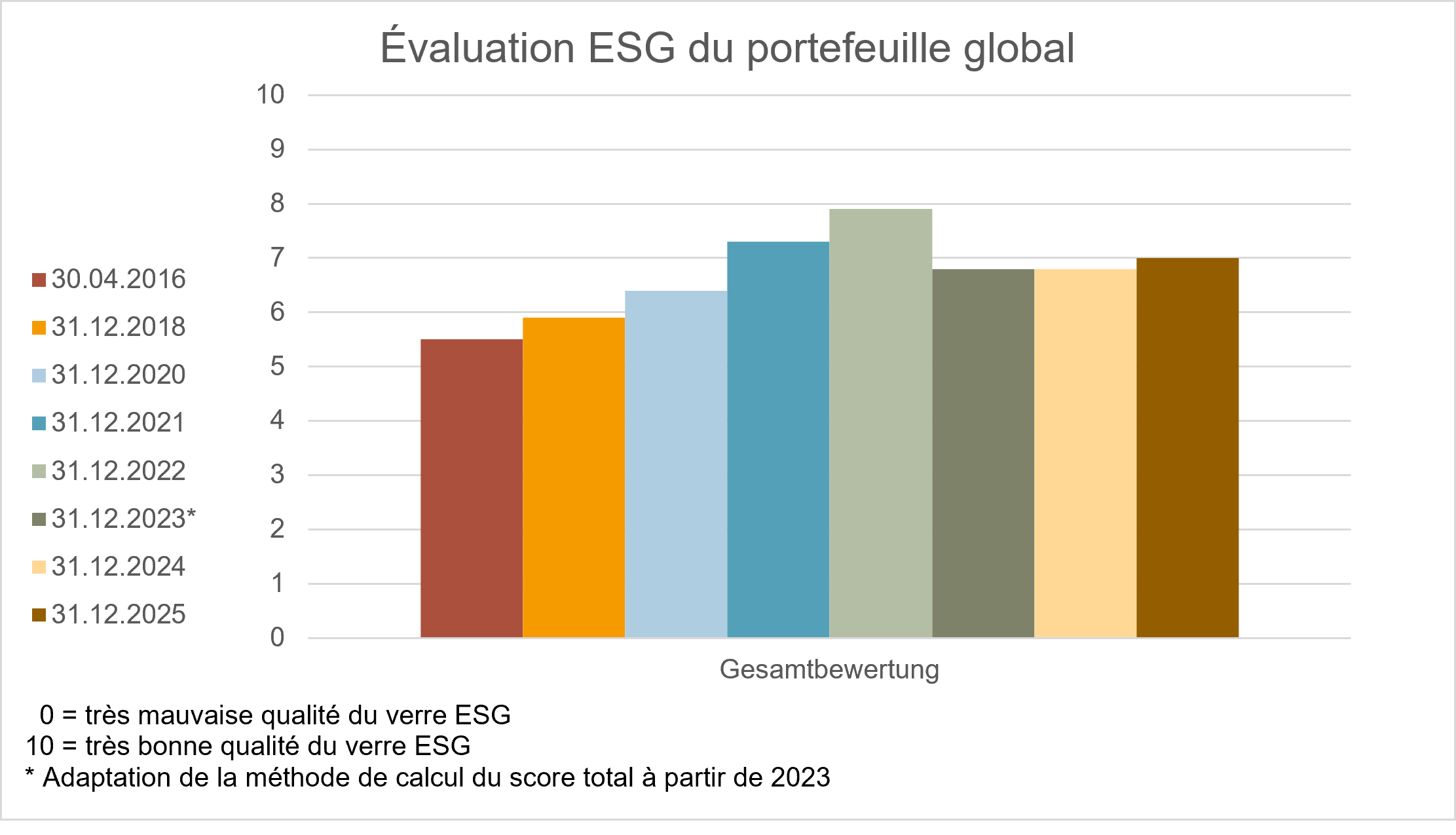 Mesure annuelle de la notation ESG par une société reconnue en Suisse